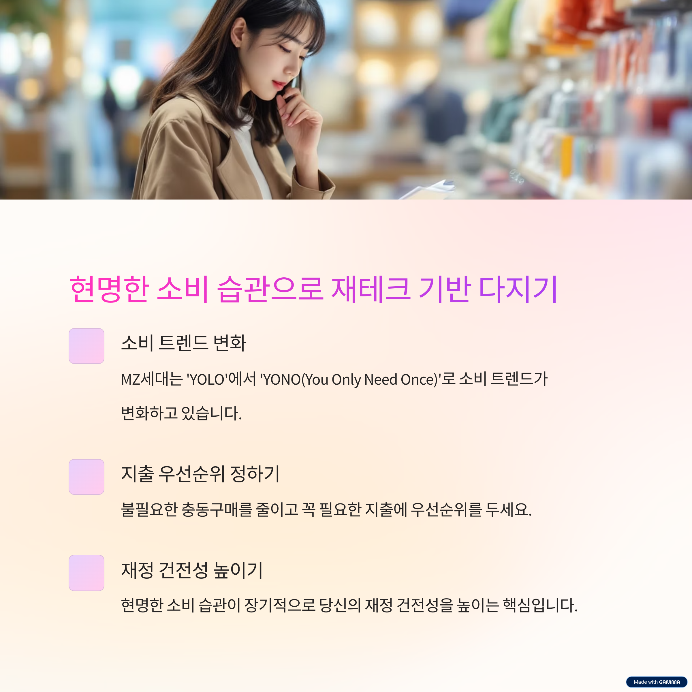 불필요한 지출을 줄이고 가치 있는 소비를 할 수 있어요
