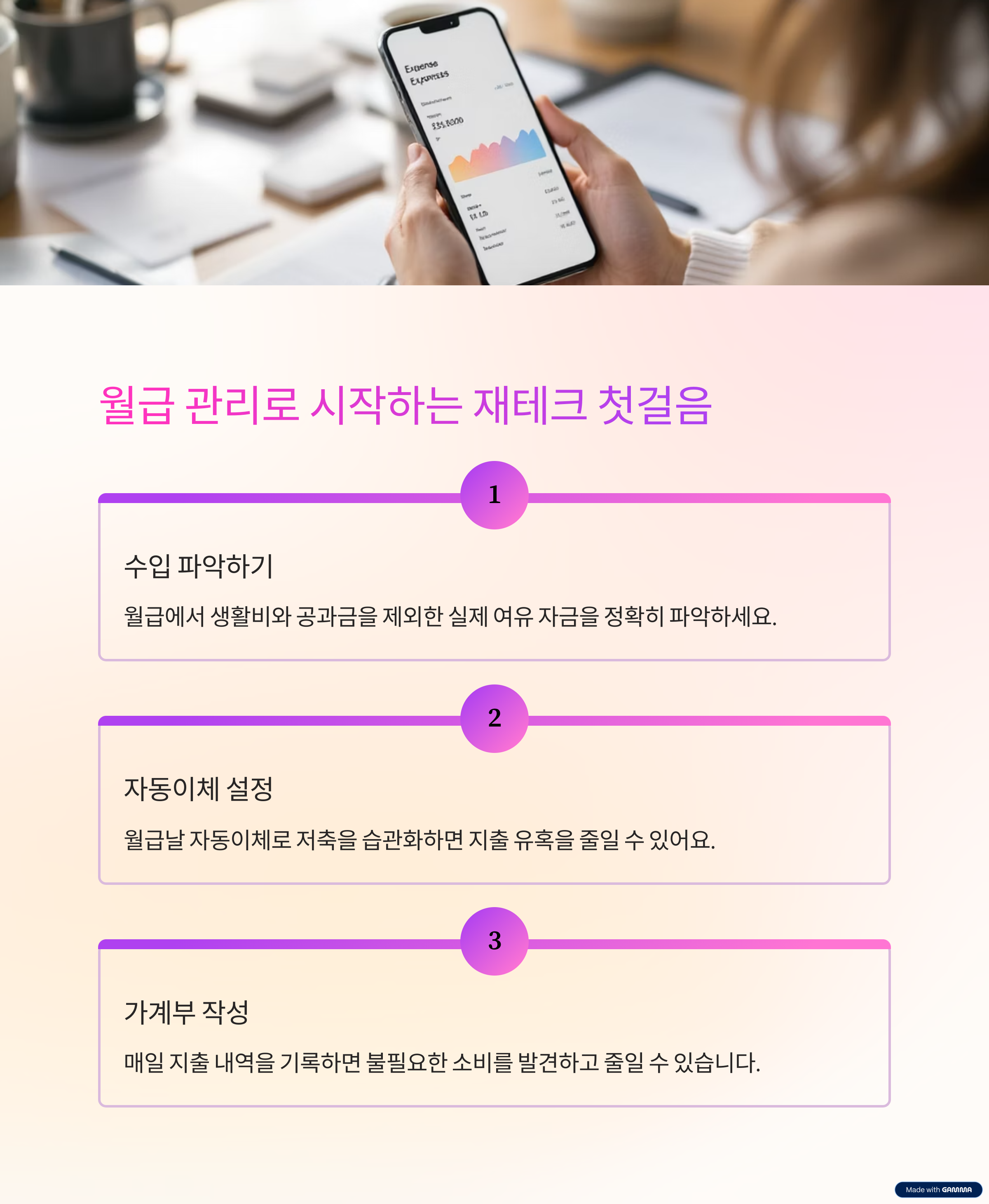 | 월급 관리 | 고정 지출과 변동 지출 분리 | 가계부 앱 활용 |
